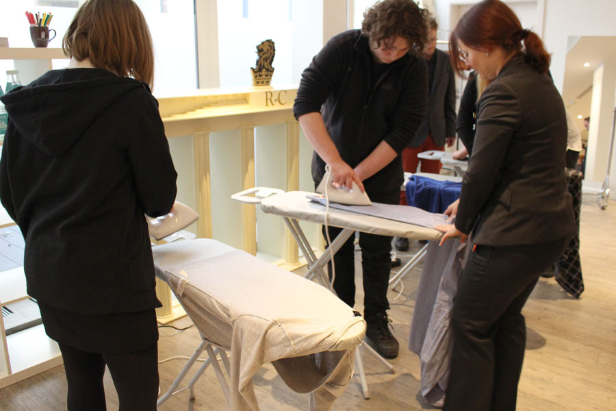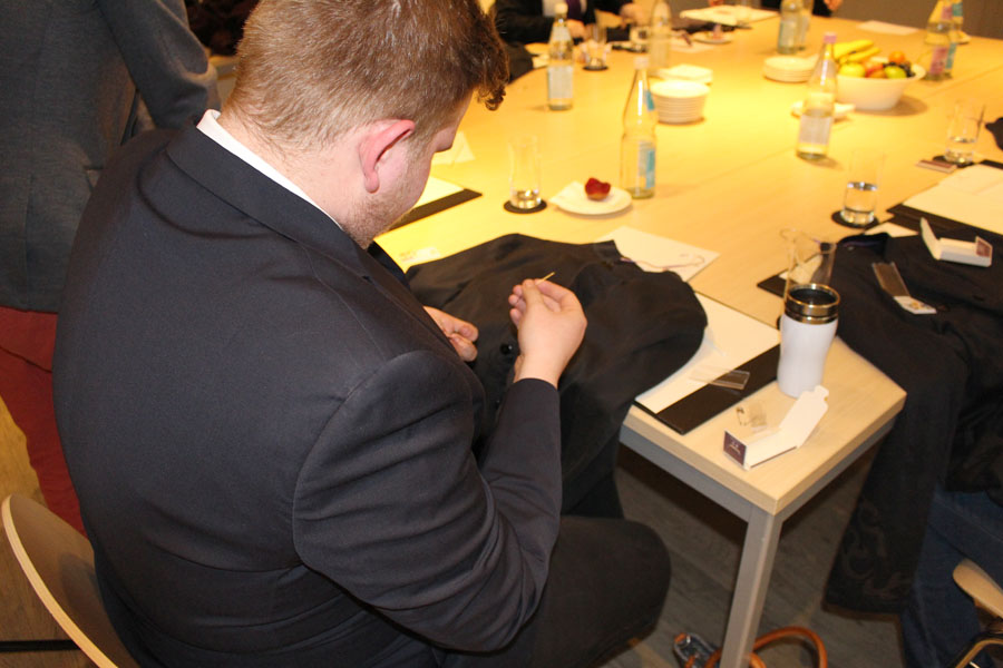 Am 24. Februar besuchten wir zum vorerst letzten Mal das fast schon vertraute Luxushotel am Potsdamer Platz, um das letzte Modul im Rahmen des im Oktober 2016 begonnenen Workshops „Succeed through Services“ zu absolvieren. Wieder wurden wir von Katharina Sachse (Human Resources Management) sehr herzlich in der Lobby empfangen und als Besucher in die „Backstage“-Etage hinunter begleitet, in der sich sonst nur die Mitarbeiter aufhalten dürfen.Im Schulungsraum, der auch diesmal für uns hergerichtet war wie für ein Crew hochkarätiger Manager (mit Obst, Getränke & Sweets), begrüßten uns Verena Grunow (Assistant Housekeeping Managerin) und Simon Mumm (Floor Supervisor), die uns durch das Tagesprogramm führen sollten. Schwerpunkt diesmal: Outfit und Grooming Coaching. Ein lebendiger Seminar-Parkours, während dem wir lernten, wie Mann/Frau möglichst zügig ein Hemd bzw. eine Bluse bügeln kann, wie ich korrekt einen Knopf annähe und - in Form eines Kreuzworträtsels inklusive Siegerprämie(!) - worauf es beim Waschen unterschiedlicher Stoffe ankommt. Schließlich ging es darum, wie du dich für ein Bewerbungsgespräch anziehen solltest, wie dein Styling nicht sein darf, worauf es ankommt, wenn du von dir Bewerbungsfotos machen lässt. Da insbesondere wir Jungs keine geeigneten Klamotten dabei hatten, stattete uns Simon mit Hemd, Krawatte - binden mussten wir selbst, nachdem Simon es uns beigebracht hatte - und Jackett aus. Zum Schluss fotografierten uns Katharina und Verena mit professioneller Beleuchtung und Regie und nicht zuletzt im neuen Top-Style - die perfekten Bewerbungsporträts!Wir danken Katharina, Verena und Simon ganz herzlich für diesen super vorbereiteten, lebendig und locker durchgeführten Nachmittag! Auch der wird uns allen noch sehr lange in Erinnerung bleiben, nicht nur, weil wir für uns ganz viel daraus mitnehmen konnten, sondern weil er mit den anderen Workshop-Tagen zusammen eine absolut einmalige Erfahrung gewesen ist!