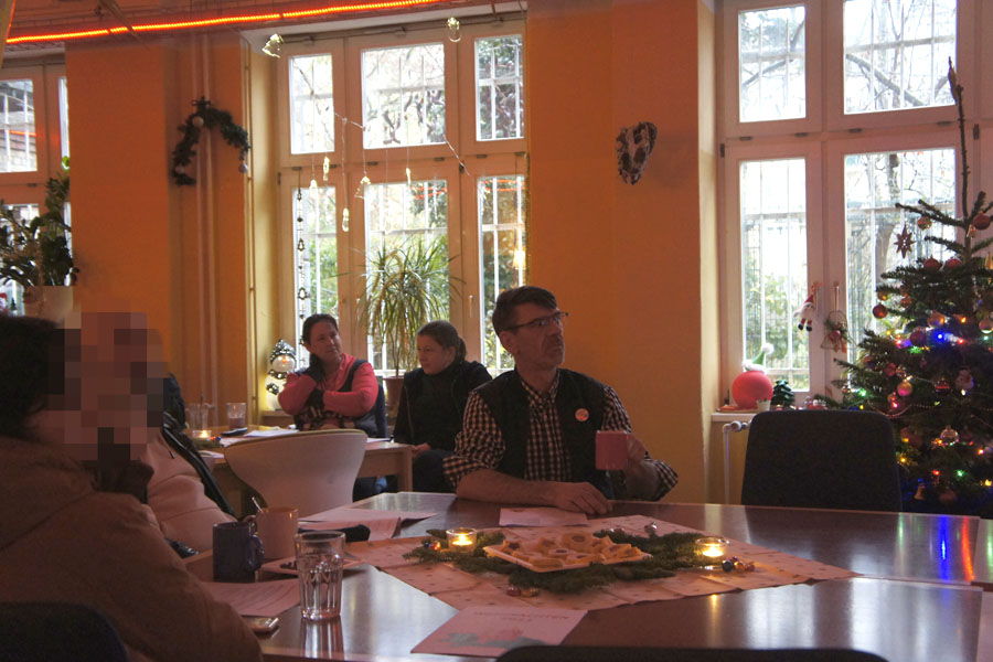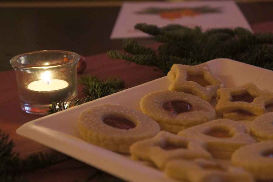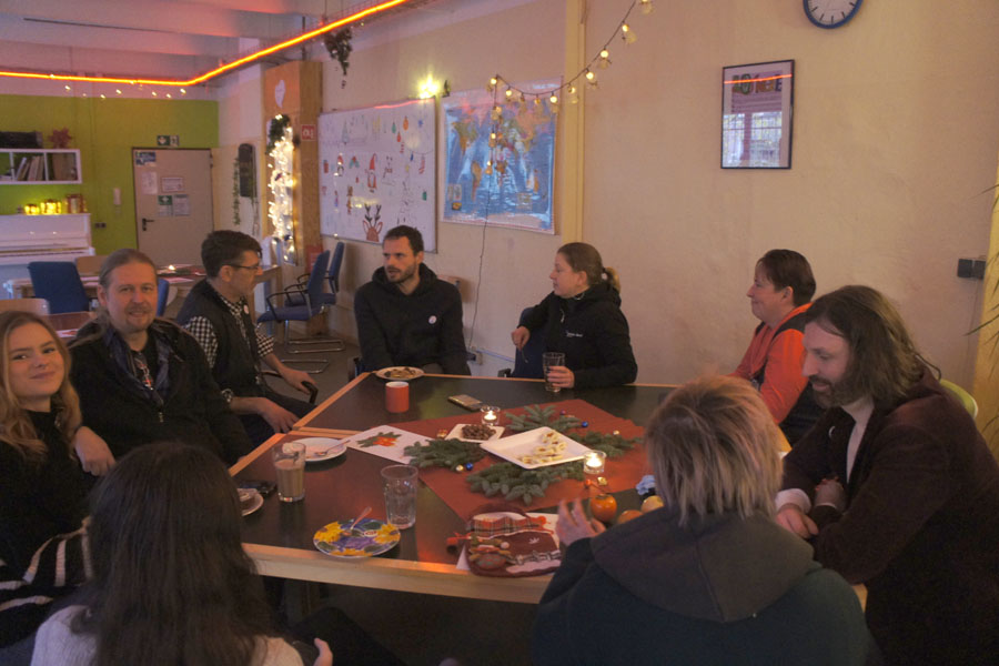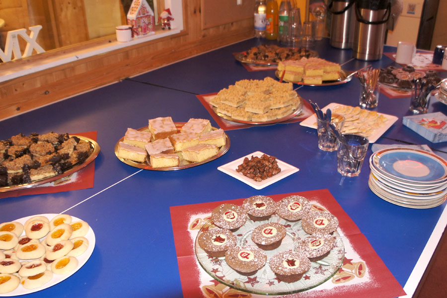 Es gab auch eine kleine poetische Einlage und genügend Zeit, um sich auszutauschen und leckere, selbstgemachte Gebäcke zu genießen. Dank der fleißigen Vorbereitung in der Küche konnten wir eine Vielzahl von Leckereien wie Haselnussecken, Plätzchen und gebrannte Mandeln anbieten.