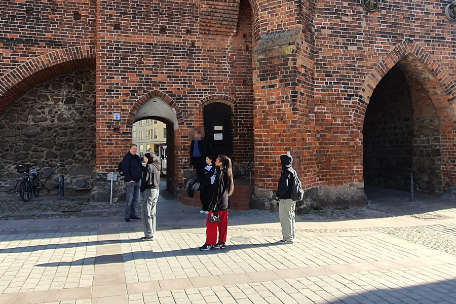 Bestens gelaunt manövrierte sich unser kleiner Trupp in Richtung Bornholmer Straße, um dort die S-Bahn ins schöne und geschichtsträchtige Bernau zu nehmen.Bei prächtigem Sonnenschein verweilten wir erstmal im Stadtzentrum. Dort fanden wir insgesamt schöne alte wie neue Gebäude vor. Dabei fiel vor allem der Kirchenturm ins Auge, neben neueren Einkaufsläden ergab das einen schönen Mix aus Tradition und Modernität.Dann liefen wir die etwa 600 Jahre alte Stadtmauer entlang, dessen Robustheit und Größe uns imponierten. Später besuchten wir den benachbarten Park, der auch mit einem großräumigen Spielplatz ausgestattet worden ist, den wir selbstverständlich auch gleich belagerten. Numcy balancierte gekonnt auf einer Wippe, Nick und ein paar Teilnehmer*innern funktionierten die Tischtennisplatten zum Sonnenbaden um und so genossen wir das überragende Wetter.Nach solchen schweißtreibenden Aktivitäten mussten wir uns selbstverständlich stärken! Zurück im Stadtkern überfielen wir den dortigen Imbiss. Bei toller Pizza, Falafel, Pommes und Döner erfreuten wir uns noch an Gesprächen mit Einheimischen und philosophierten über die Unterscheide zwischen Bernau und dem kleinen Berlin.Ein absolut gelungener Tag. Danke ans Wetter und an die restlichen Beteiligten.