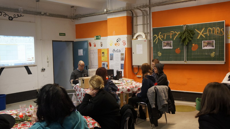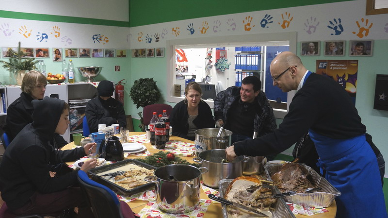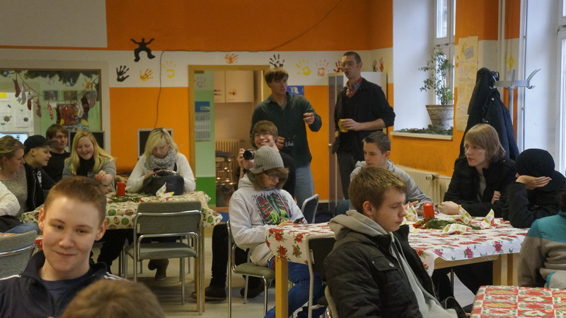 Am Montag, den 10.12.2012 fand in den Unterrichtsräumen in der Wriezener Straße 7 die Weihnachtsfeier von Schule & Beruf statt. Die jugendlichen Teilnehmer feierten zusammen mit den Mitarbeitern einen vorgezogenen Jahresausklang. Traditionell folgten auch wieder einige der zuständigen Mitarbeiter der Jugendämter und weitere Betreuer und Sozialarbeiter unserer Einladung.Höhepunkte waren neben der Zeugnisausgabe das gemeinsame Festessen mit Pute, Ente, Rotkohl und Klößen, die Kaffeetafel mit allerlei Selbstgebackenem, sowie Karaoke und das gemeinsame Tischtennisspielen.Wir bedanken uns bei allen Helfern für ihre tatkräftige Unterstützung und besonders bei Herrn Dr. Axel Troost für die Spende des Weihnachtsbaumes.