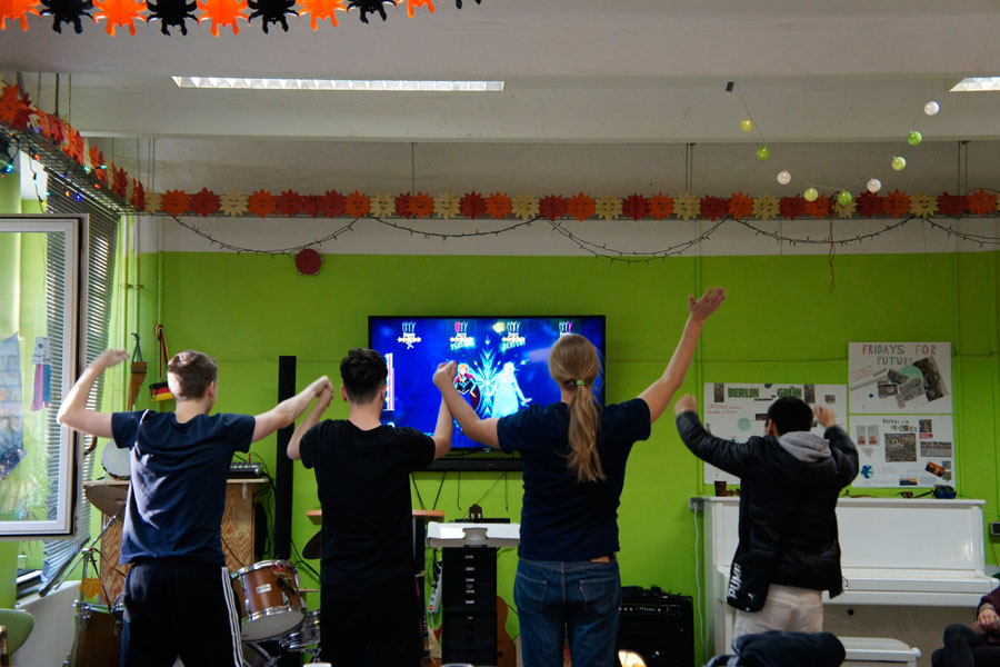 Aus der Geschäftsstelle hörte man: Eine Teilnehmerin sagte: Nicht nur aufgrund dieser beiden Rückmeldungen hat sich die Belegschaft dazu entschlossen, künftig auch regelmäßig Tanz und Gesang - zusätzlich zum bestehenden Bandprojekt, Klavier- und Gitarrenstunden - als Nachmittagsaktivität im Projekt zu veranstalten.