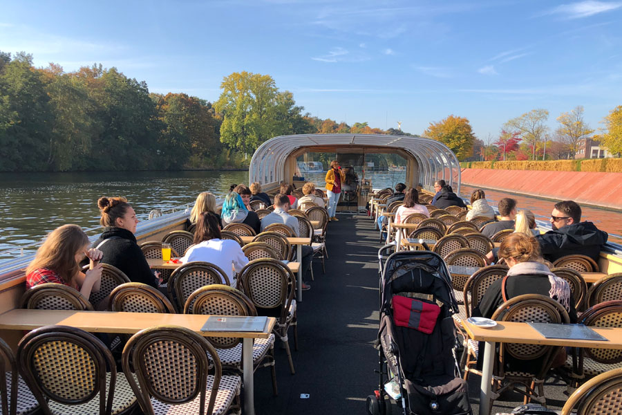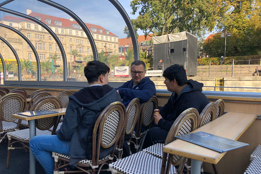 Während die Prüflinge sich am Mittwoch, den 10. Oktober 2018, noch einmal intensiv an einem speziellen Lerntag im Projekt auf ihre bevorstehenden Prüfungen vorbereiteten, starteten wir morgens im Projekt zu einem Ausflug und fuhren zum Alexanderplatz.Es war der letzte wirklich schöne Tag des Jahres und so entschlossen wir uns, eine Bootstour auf der Spree zu machen. Wir liefen am Neptunbrunnen vorbei zur Spree und bekamen sofort einen Dampfer. Dort nahmen wir Platz und konnten einige Sehenswürdigkeiten, wie die Museumsinsel, das Reichstagsgebäude oder das Haus der Kulturen der Welt, bestaunen. Die Sonne schien und für Speis und Trank war gesorgt - es war sehr schön.