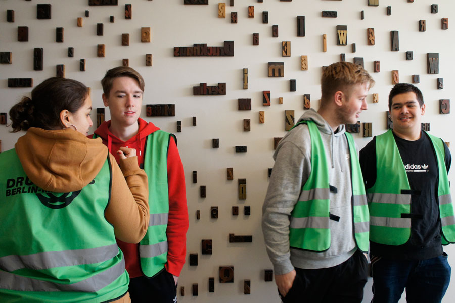 Im Rahmen unserer Berufsorientierung besichtigen wir in regelmäßigen Abständen Berufs- und Ausbildungsmessen. Um ein umfassenderes und greifbares Bild eines Berufes zu bekommen, besuchen wir die Betriebe noch lieber direkt vor Ort. Heute hat sich eine kleine Gruppe aufgemacht, um das vielseitige Berufsfeld des Medientechnologen genauer kennenzulernen und deshalb besuchten wir das Druckhaus Berlin-Mitte am Standort Südkreuz. Dieses bietet seinen Kund*innen einen kompletten Service von der Beratung bis zum fertigen Druckerzeugnis an. Das Druckhaus garantiert sogar eine umweltfreundliche Herstellung der Druckerzeugnisse. Die Berufsausbildung im Unternehmen umfasst folgende Berufe: