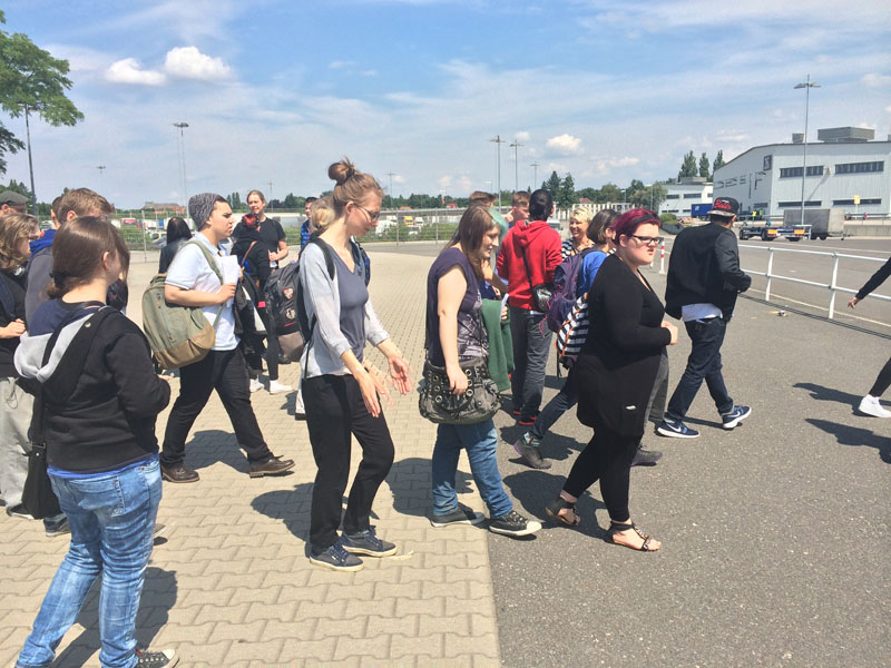 Voller Vorfreude auf Spiel, Spaß und Spannung machten wir uns auf den Weg zur Jugendmesse . Wir erwarteten ein abwechslungsreiches Programm aus Musik, sportlichen Aktivitäten und Informationen zu Ausbildungsberufen. In der Ausbildungshalle konnte man sich an verschiedenen Ständen über Ausbildungen informieren, der Radiosender NRJ hatte verschiedene Gäste eingeladen und hat die do's und dont'ts eines Vorstellungsgespräches vorgeführt.Alle Teilnehmer hatten einen Arbeitsauftrag zum Thema Ausbildung, den es in Kleingruppen zu erledigen galt. Da die Arbeitsaufträge schnell erledigt waren, zog es uns gleich in die umliegenden Hallen, wo es eine Karaoke-Bühne, eine Kartbahn, Verkaufsstände und Infostände der Bundeswehr, Feuerwehr und der Verkehrswacht gab. Der beliebtest Stand war wohl der der Verkehrswacht: einmal in einem sich überschlagenden Auto sitzen ohne Blessuren davon zu tragen. Sinn der Übung war es zu lernen wie man sich in einem solchen Fall verhält.Das übrige Angebot war schnell abgehakt: Live-Musik gab es keine, die Kartbahn konnte man nur nach Voranmeldung benutzen und alles Übrige setzte volle Taschen voraus... Wir zogen bester Laune, aber etwas enttäuscht von dannen.Fotos vom Messebesuch: