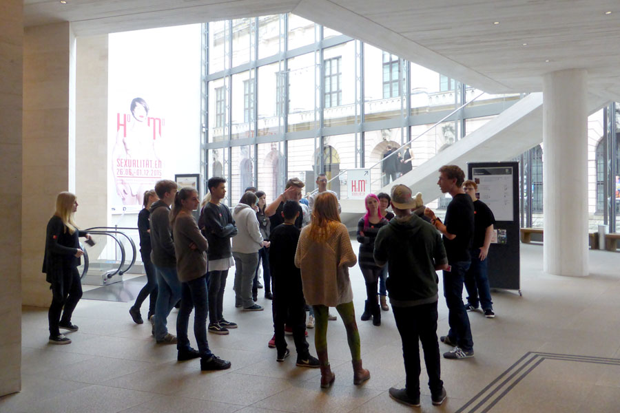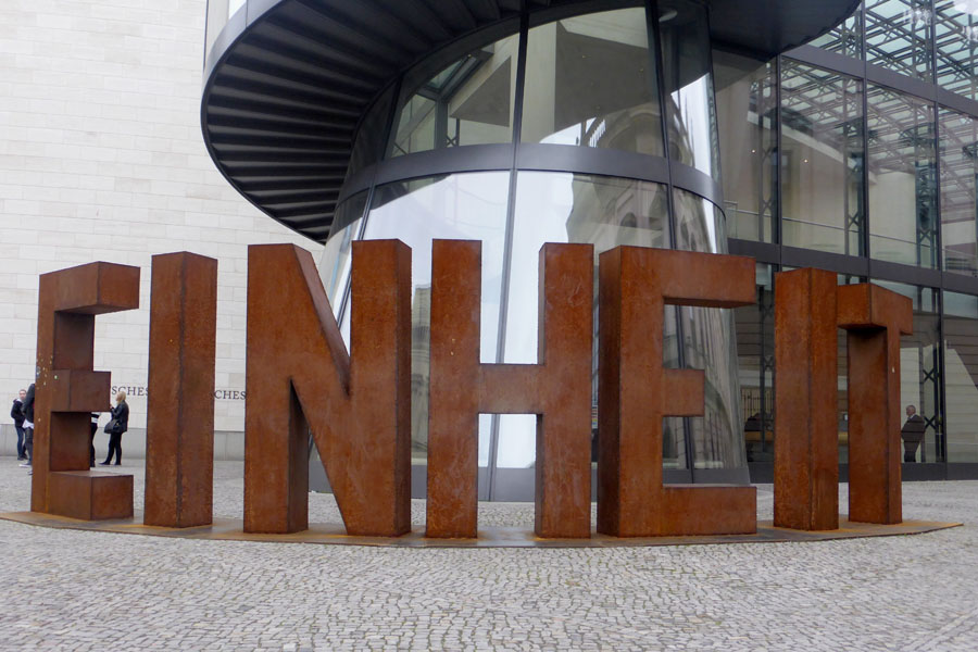 Einen Tag nach dem Gedenktag zum Fall der Berliner Mauer und der Öffnung der innerdeutschen Grenzen besuchten wir am Dienstag die Sonderausstellung Alltag Einheit im Deutschen Historischen Museum. Ein viertel Jahrhundert nach der politisch und rechtlich vollzogenen Einheit der beiden deutschen Staaten galt es Rückschau zu halten auf diese Zeit. Wie gestaltete sich die Übergangsgesellschaft? Begrüßungsgeld, Hausbesetzer, Love Parade, Neonazis sind einige Überschriften zu den Ausstellungsthemen.Mit unserem Museums-Ticket nahmen wir uns danach noch eine Stunde Zeit, um die Dauerausstellung zur deutschen Gesamtgeschichte zu erkunden. Die kleine Sonderausstellung gefiel uns nicht so gut, da einige den Kurzvorträgen in der Führung nicht folgen konnten. In der Hauptausstellung dann, konnten wir in mehreren Kleingruppen eigenständig das große Museum kennenlernen.