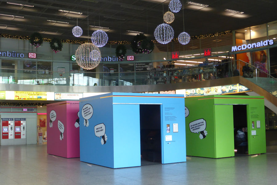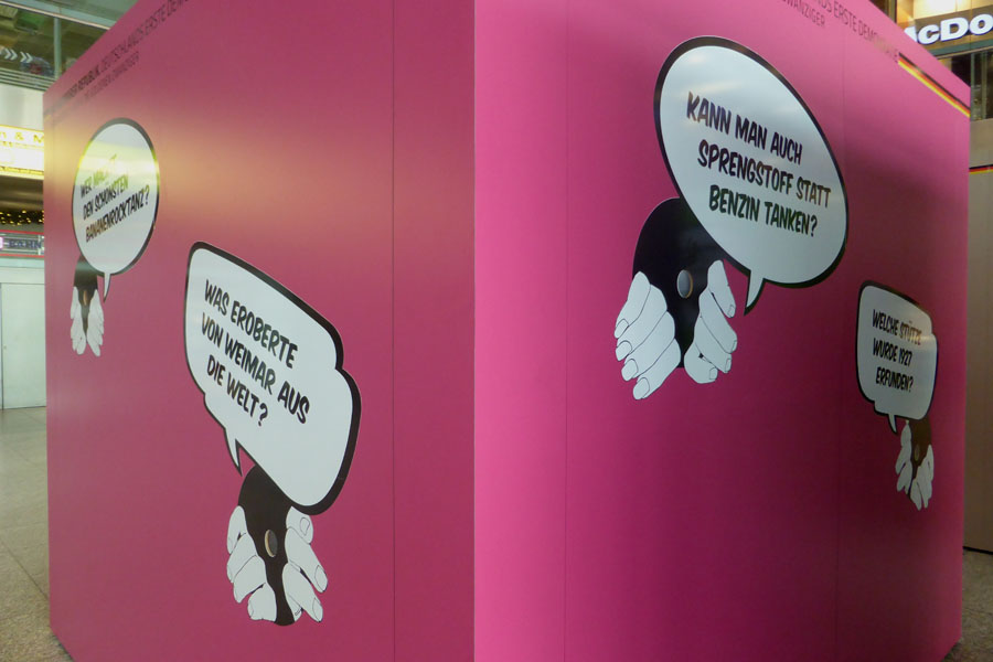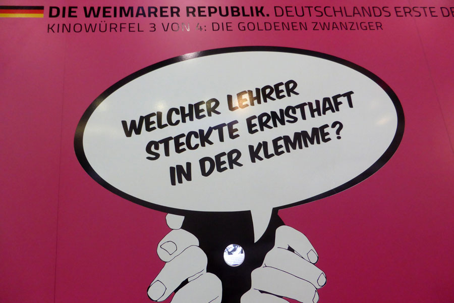 Am 01.12.2015 gingen wir gemeinsam als Projekt in eine Wanderausstellung mit dem Thema „Weimarer Republik“. Startpunkt dieser Ausstellung war Weimar, gefolgt von Brüssel, dem Sitz des Europäischen Parlaments. Nun konnte man sie für wenige Tage im Berliner Ostbahnhof besuchen. Ein Großteil der Teilnehmer und Bildungsbegleiter von Schule & Beruf kamen mit.Am Ostbahnhof angekommen teilten wir uns in vier Gruppen auf, um nacheinander die vier Ausstellungscontainer, Kuben genannt, zu erkunden: Errungenschaften, Demokratie, Krisen und Lehren und Neubeginn, Wahlen und Verfassung. In jedem Kubus gab es einen großen Monitor mit jeweils einer kurzen Dokumentation und vier weiteren Medientischen für leichtverständliche Informationen. An der Außenseite der Container waren Sprechblasen zu lesen, beispielsweise: „Sprengstoff statt Benzin tanken“. Darunter konnte man in kleinen Gucklöchern die original-historischen Erklärungen zu den Sprüchen finden.Es gab einen kleinen Arbeitsauftrag, der von allen sehr gut erfüllt wurde, jedoch war es für einige schwierig, sich mit allen 4 Themenbereichen zu beschäftigen. Letztendlich war es ein abwechslungsreicher Tagesablauf und eine interessante Ausstellungsform.