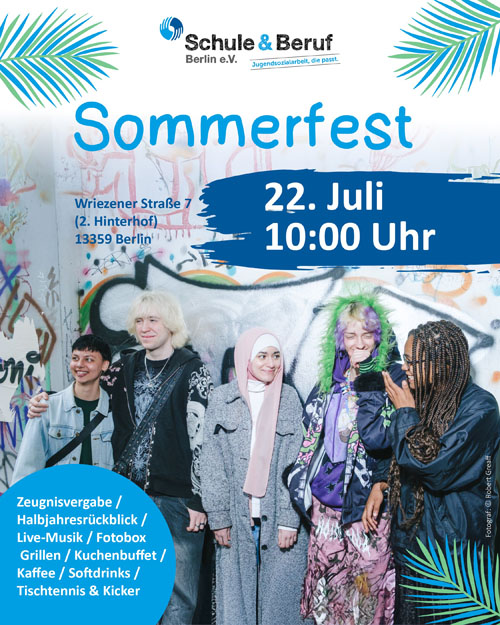 Bald ist es wieder so weit: Am 22. Juli möchten wir Sie, liebe Eltern, liebe Betreuerinnen und Betreuer, liebe Nachbarinnen und Nachbarn, aber auch euch, liebe ehemalige Teilnehmerinnen und Teilnehmer ganz herzlich zu unserem Sommerfest bei Schule & Beruf einladen.