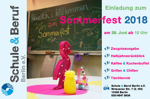 Einladung zum Sommerfest von Schule & Beruf am 28. Juni
