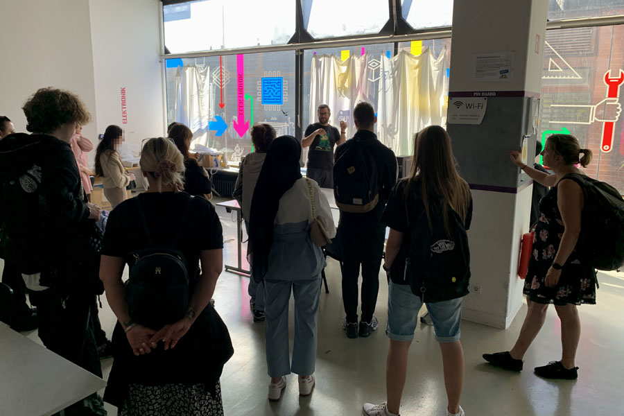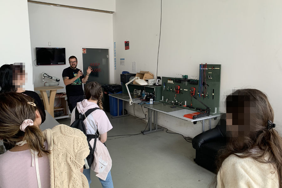 Wir haben am 20.09.2023 das Happy Lab in der Demminer Straße besucht. Es handelt sich um eine mittelgroße Kreativwerkstatt, die mit 3D-Drucker, Plotter, Laser, CNC-Fräse, programmierbarer Näh- und Stickmaschine und einer Vielzahl kleinerer Werkzeuge ausgestattet ist. Hier kann man viele Projekte umsetzen, für die einem oft die Werkzeuge zu Hause fehlen und dies sogar 24/7. Zudem kann man die Handhabung der einzelnen Maschinen durch Workshops erlernen und hat somit auch die Möglichkeit, seine kreativen Arbeiten ohne vorherige Kenntnisse umzusetzen.