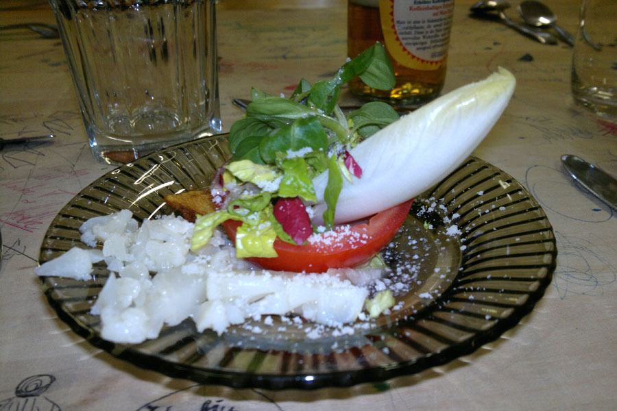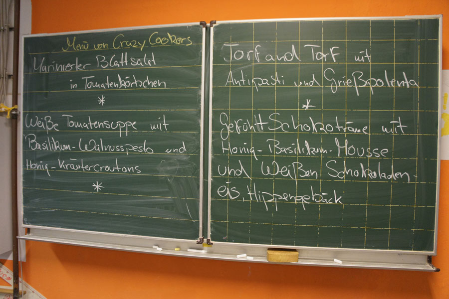 In der letzten Woche fand ein gastronomischer Workshop in der Küche von Schule & Beruf statt. Die TeilnehmerInnen erhielten einen Einblick in die Arbeitsweise einer Restaurantküche. Sie erlernten Tricks und Kniffe, die der Zubereitung eines 4-Gang-Menüs dienten. Die Vorbereitung für das Menü benötigte viel Zeit, so dass bereits am Montag damit begonnen wurde. Alle TeilnehmerInnen, die dem Workshop beiwohnten, waren erst etwas unmotiviert, doch von Tag zu Tag entwickelten sie mehr Interesse und Begeisterung für gastronomische Ausbildungsberufe und die Arbeit in der Küche. Die TeilnehmerInnen wurden nicht nur innerhalb der Küche eingewiesen, sondern auch im Punkt Hygiene geschult.Am Freitag wurde dann das 4-Gang-Menü präsentiert und an einer großen Tafel angerichtet. Alle TeilnehmerInnen freuten sich über das leckere Essen und die tollen Erfahrungen, die Sie während der Woche machen durften.Fotos vom 4-Gänge-Menü: