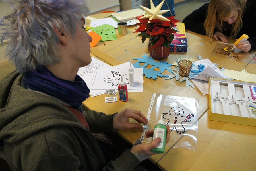 Am 28.11.15 haben wir uns an einem Projekttag auf die Weihnachtszeit vorbereitet.Mit einem gemütlichen Brunch starteten wir in den Tag und stärkten uns für unsere Kreativität. Anschließend sammelten wir uns alle im Projektgruppenraum, um die einzelnen Stationen einzuteilen. Jeder durfte seine kreative Ader beim Plätzchenbacken, beim Gestalten von Window Colour- Fensterbildern, beim Basteln von Weihnachtssternen und bei der Serviettentechnik ausprobieren.Um den Tag abzurunden, schmückten wir die Räumlichkeiten mit unseren handgefertigten Ergebnissen. Nun kann die Weihnachtszeit beginnen und die Weihnachtsfeier stattfinden.