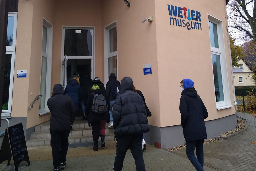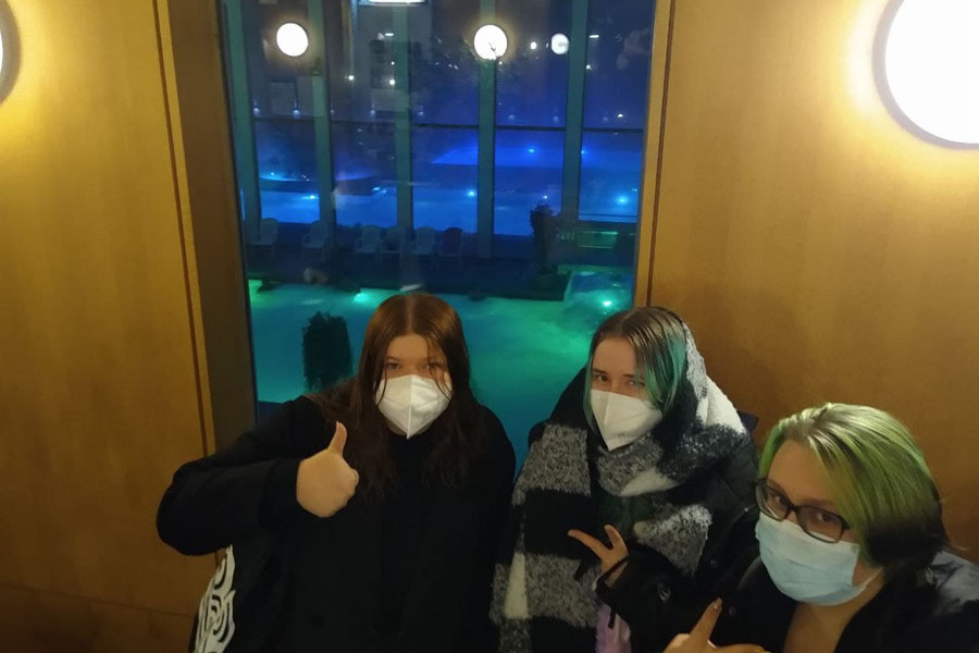 Am 3. November machten wir uns am frühen Nachmittag mit Sack und Pack auf den Weg ins unbekannte Land: Brandenburg. Genauer gesagt nach Bad Saarow, und obwohl die Anfahrt etwas anstrengend war, hatten wir in unseren Pausen interessante Gespräche über Lollis und kamen dann noch vor Anbruch der Dunkelheit in unserer Jugendherberge an. Dort bezogen wir unsere Bungalows, welche relativ klein waren, was jedoch in Ordnung war, da wir uns jeweils zu viert ein Achterzimmer geteilt haben. Die Bungalows waren ziemlich sauber und draußen gab es auch eine schöne Sitzecke mit Bänken und Tischen. Nach dem Abendbrot machten wir uns bereit für eine Nachtwanderung. Trotz eines kühlen Herbstabends war uns durch die Bewegung relativ warm. Auf dem düsteren Weg haben wir dann einen schönen Steg am Wasser gefunden, wo wir dann den klaren Sternhimmel sehen konnten.Am nächsten Tag sind wir dann zum Wettermuseum gegangen. Wir sind früh aufgestanden und haben dennoch den Bus nicht bekommen. Der Regen verstärkte unsere Angespanntheit. Als wir dann aber den anderen Bus bekommen hatten, empfanden wir es als entspannte Fahrt. Beim Wettermuseum konnten wir verschiedene Instrumente sehen, die zur Aufzeichnung des Wetters benutzt wurden, vor allem die Drachen und Ballons fanden wir bemerkenswert. Das Highlight war aber definitiv der Morsetelegraf, welchen wir als super Spielzeug angesehen haben. Wir haben auch entdeckt, dass die Wärmebildkamera sehr unterhaltsam war. Danach teilte sich die Gruppe in Team Pizza und Team Therme. Wir fanden, die Wetterbedingungen waren perfekt für unseren Thermenbesuch. Wir konnten uns schön im warmen Wasser entspannen, am meisten waren wir im Whirlpool - dort haben wir uns ohne Ende vom Wasser massieren lassen. Zwischendurch sind wir auch in eine Salzoase gegangen, wo wir uns dann eine schöne Lichtershow ansehen und unsere Lungen öffnen konnten. Der Rückweg lief für uns ziemlich gut, vor allem im Vergleich zum Morgen. Team Pizza war positiv überrascht. Allerdings hätten sie sich einen Bus für die Rückfahrt gewünscht. Nach dem anstrengenden Tag (und da unser Lagerfeuer buchstäblich ins Wasser fiel), fanden wir uns alle noch mal zusammen, um ein paar Runden Werwolf zu spielen.