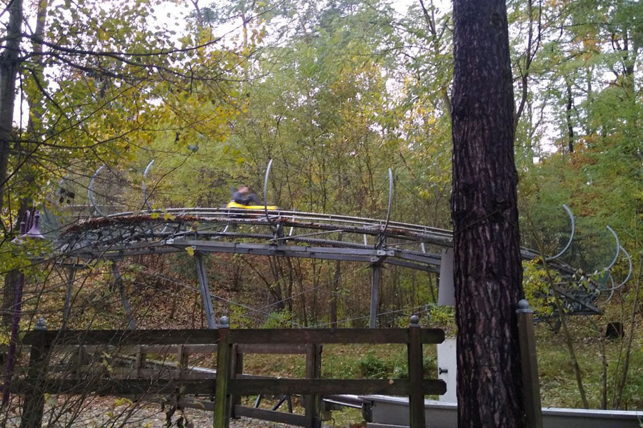 Das Frühstück war wie jeden Morgen super, nicht nur wegen den Bananen mit den fröhlichen Gesichtern. Mit gepackten Sachen machten wir uns auf den Weg zur Sommerrodelbahn. Über Stock und über Stein marschierten wir die letzten Schritte zum Kassenhäuschen und lasen mit schockierter Miene auf dem Schild „Wetterbedingt geschlossen“. Doch wie sich herausstellte, war das Schild noch vom vorherigen Tag. Und wir konnten exzessiv rodeln. Zum Schluss haben wir noch eine kleine Show von einem Popkornautomaten genießen können, bei dem wir das Lied dann für Stunden nicht mehr aus unserem Kopf befreien konnten. Die Rückfahrt war ausnahmsweise unspektakulär, worüber wir uns in diesem Moment tatsächlich sehr gefreut haben.