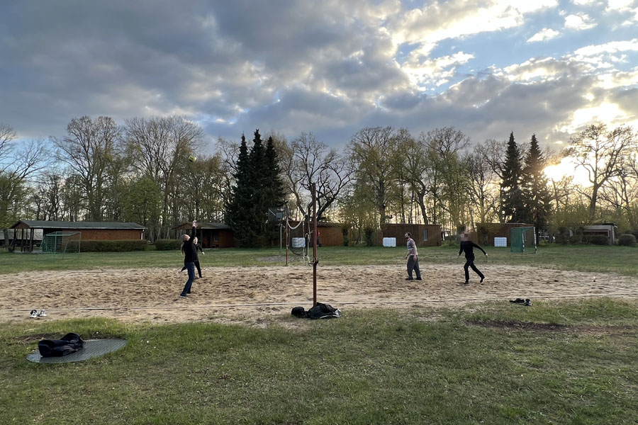 Nach einer kurzen Pause teilten wir uns in zwei Gruppen auf: Prüflinge und Nichtprüflinge. Die Prüflinge widmeten sich ihren Aufgaben und die andere Gruppe erkundete die Umgebung und den atemberaubenden Schweriner See. Gegen Abend trafen wir uns im Speisesaal zum gemeinsamen Abendessen. Nach dem Essen wurde das Lagerfeuer angezündet und wir beschäftigten uns mit Tischtennis, Badminton, Basketball und Kartenspielen. Am Ende des Abends waren wir alle ziemlich erschöpft und zogen uns in unsere Zimmer zurück.