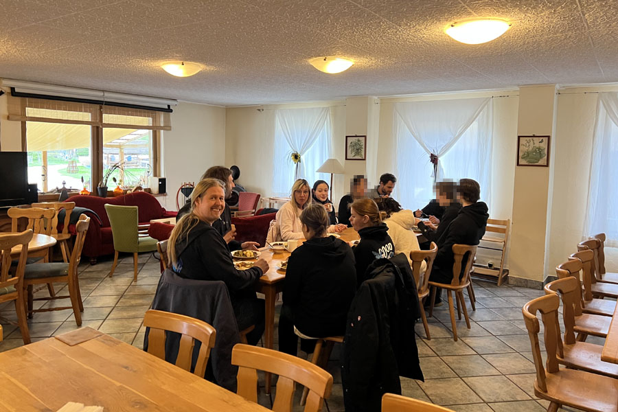 Der nächste Tag begann mit dem Frühstück um 8:30 Uhr. Es gab eine große Auswahl an selbstgemachten Aufstrichen, wobei auch für Vegetarier etwas dabei war. Am Vormittag teilten wir uns wieder in unsere Gruppen auf und die Nichtprüflinge machten einen langen, schönen und entspannten Waldspaziergang.