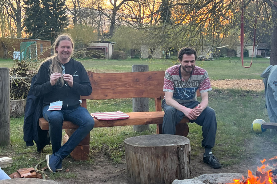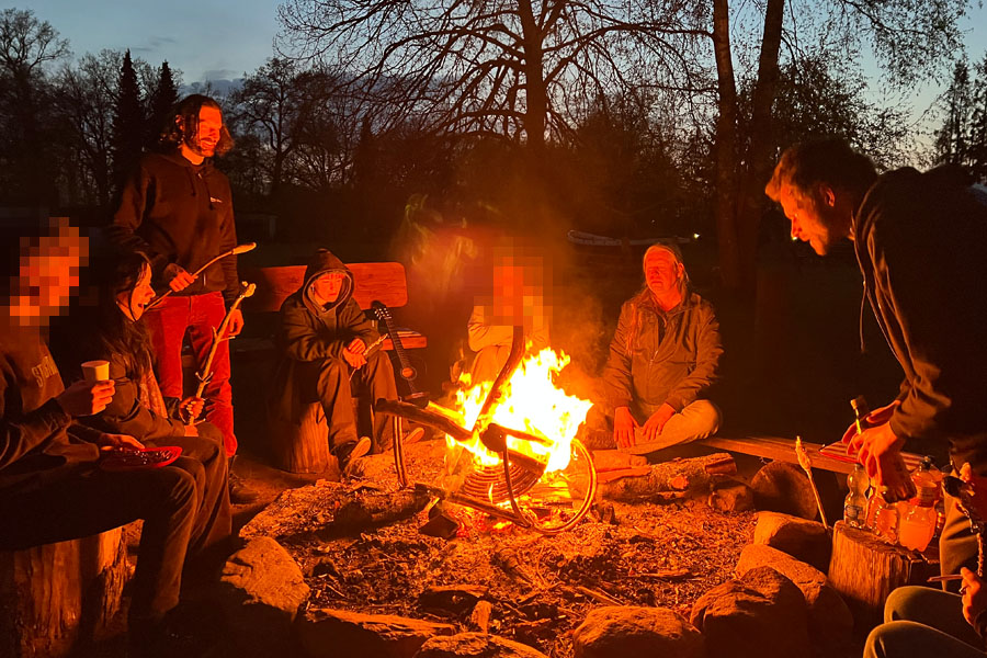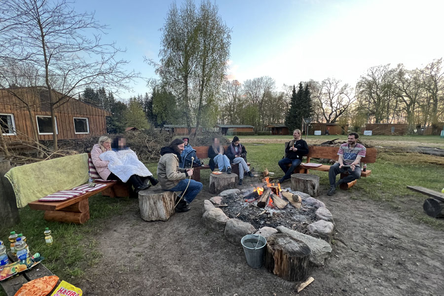 Am Abend grillten wir alle gemeinsam, haben ein Lagerfeuer gemacht und uns gegenseitig beschäftigt. Als die Nacht einbrach, haben wir uns alle um das Lagerfeuer versammelt, Stockbrot gebacken und Werwolf gespielt. Dabei haben wir uns alle sehr amüsiert.