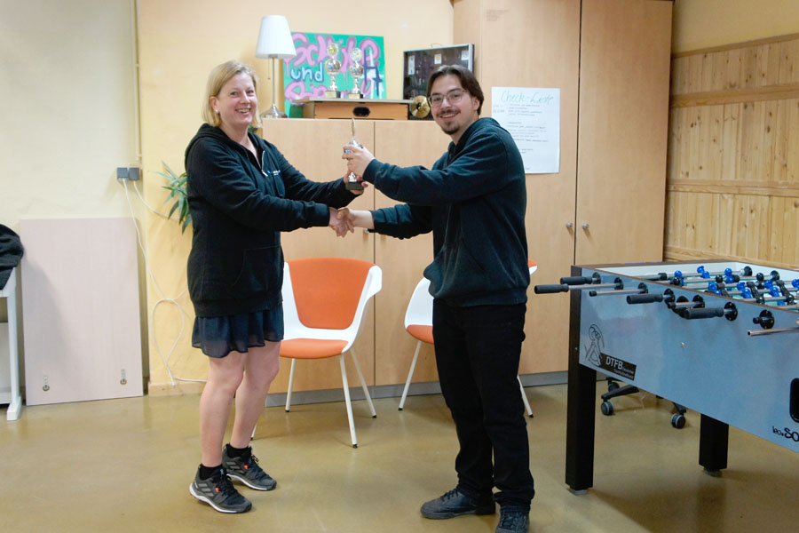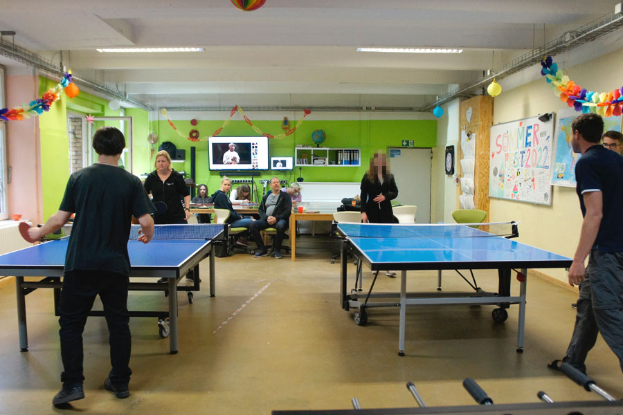 Aufgrund des Wetters konnten wir leider unser geplantes Tischtennisturnier nicht an unserem Sommerfest durchführen. Wir haben dies dann einen Tag später mit allen Teilnehmern*innen und Bildungsbegleiter*innen nachgeholt. Es wurde mit viel Einsatz und Freude gespielt, bis die Sieger festgestanden haben. Für die Gewinner gab es kleine, mit Süßigkeiten gefüllte Pokale.