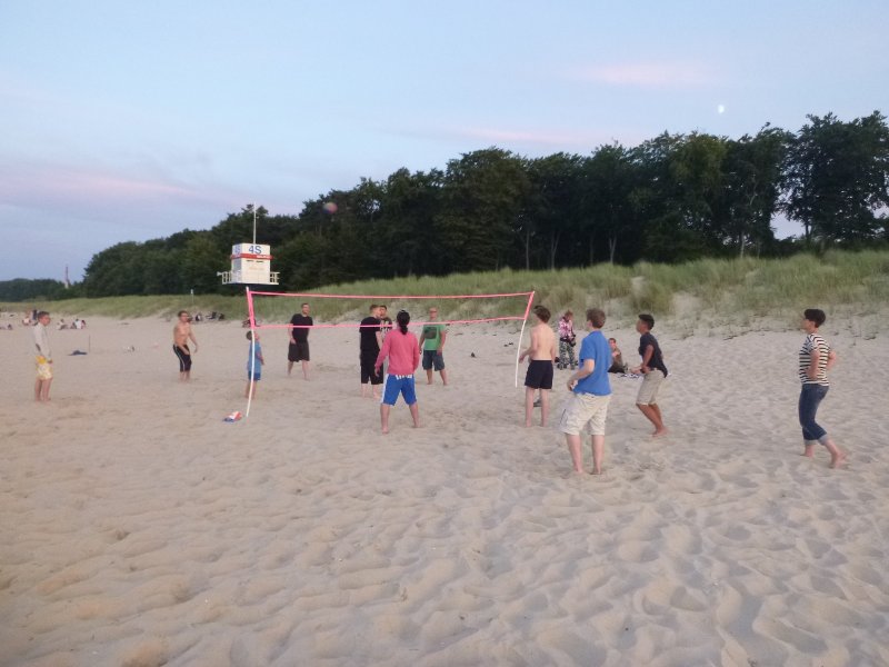Unsere Projektfahrt führte uns dieses Jahr vom 17. bis 19.7. auf die schöne Insel Usedom. Genauer, auf den strandnahen und unendlich erscheinenden Campingplatz Ückeritz (einer der größten Europas). Bei richtig schönem Wetter begann unser Ausflug am Morgen des 17.7. vom Bhf. Gesundbrunnen, wo unsere aus insgesamt 25 Personen von Schule & Beruf bestehende Gruppe in den Zug Richtung Ostsee stieg. Wenige Stunden später konnten wir - dank der Bahn - schon den Sand unter unseren Füßen knirschen und die Wellen rauschen hören. Die 15 Zelte waren schnell aufgebaut und es begann eine tolle Zeit mit viel Sonne, Meer, Sport, Musik und gemeinschaftlichem Grillen und Kochen.Ein paar Zeilen aus der Feder einiger SchülerInnen veranschaulichen die schönen Tage der Reise: