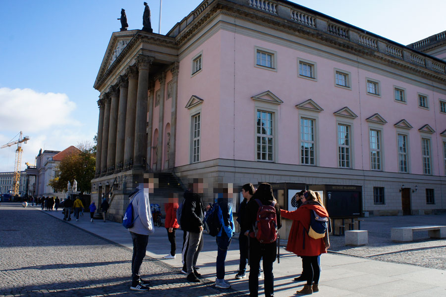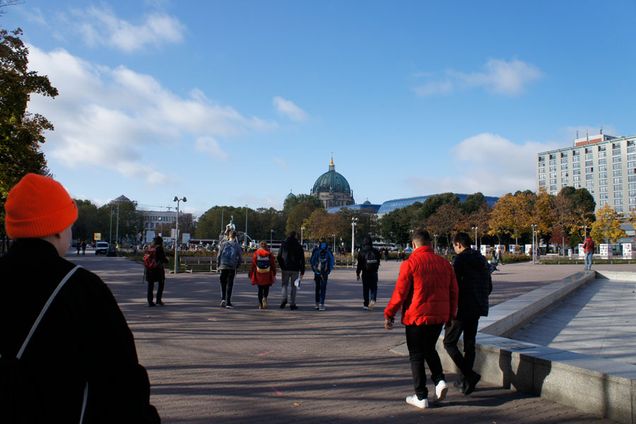 Während einige der Teilnehmer*innen von Schule & Beruf an einer Prüfungssimulation teilnahmen, erkundeten wir heute gemeinsam zehn Sehenswürdigkeiten im Stadtbezirk Mitte. Die Teilnehmenden bereiteten sich in Kurzvorträgen vor, die sie der Gruppe präsentierten.