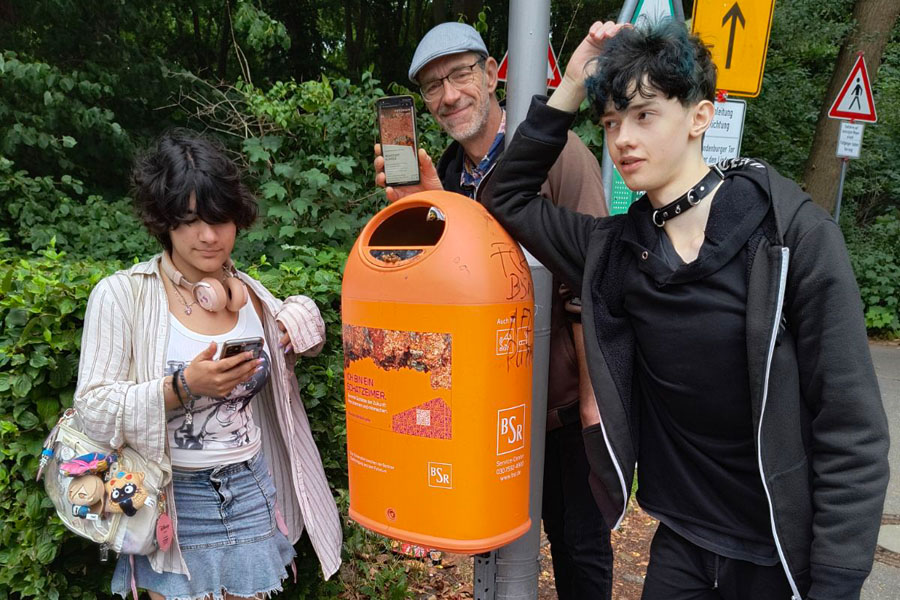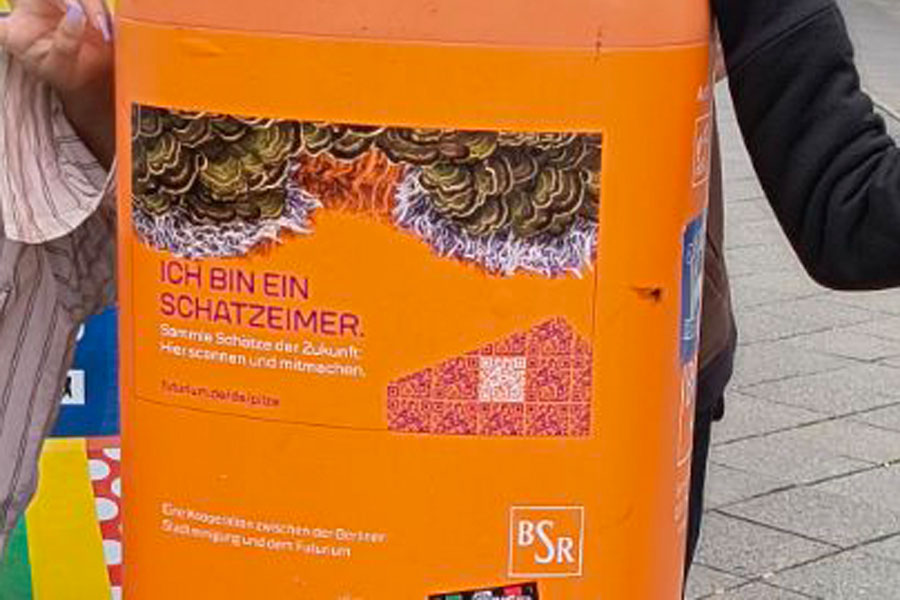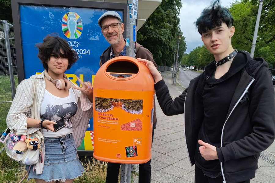Am Futurium vorbeigehend, trafen wir dann am Hauptbahnhof auf den nächsten Wissen teilenden Mülleimer, der uns über Aluminium informierte. Aluminium ist für seine Robustheit sehr leicht und wird für zahlreiche Gegenstände, Gerüste, Maschinen und Fahrzeugen benutzt, außerdem kann man ein extrem widerstandsfähiges und sicheres „Glas“ aus einer Aluminiumlegierung herstellen.Der vorletzte Eimer erklärte uns mehr über die Nutzung von Pilzen als Ressource. Sie können benutzt werden, um künstlichen Erdbeergeschmack herzustellen und man kann sie als Baumaterial zur Herstellung von Gebäuden nutzen.Der letzte Mülleimer lag direkt am Futurium und hatte die Ressource Algen. Sie produzieren den größten Teil unseres Sauerstoffs und man kann sie für Kleidung und Nahrung verwenden.