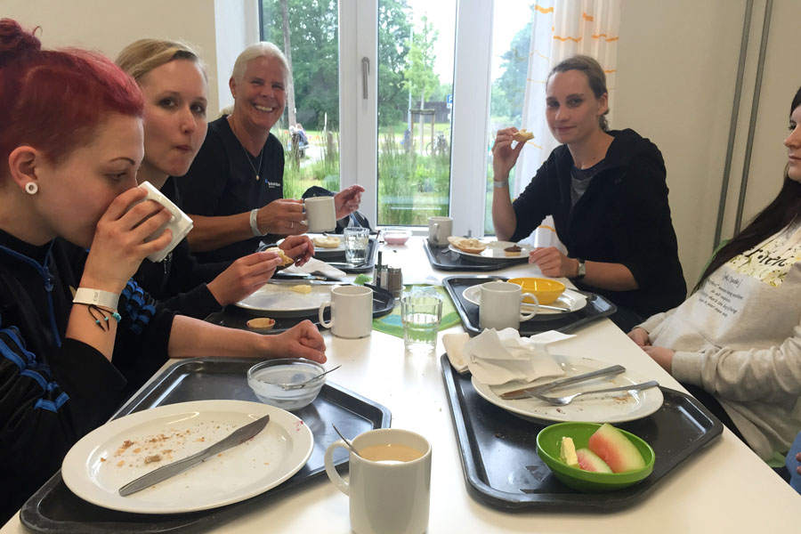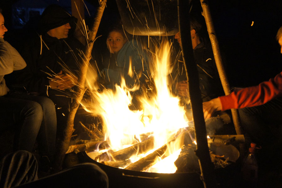 Am Mittwoch ging es mit dem Bus nach Bergen, wo wir uns in kleine Gruppen aufteilten und je nach Interesse verschiedene Sehenswürdigkeiten besuchten: Einige waren in der St. Marienkirche, andere probierten die Inselrodelbahn aus und stiegen auf den Ernst-Moritz-Arndt-Turm, von dem aus man einen tollen Blick über die Insel hat. Später trafen sich die meisten wieder im Zentrum und wir gingen gemeinsam Pizza essen. Nach der Rückkehr zum Zeltplatz holten ein paar von uns wieder „etwas“ trockenes Holz aus dem Wald, um das abendliche Lagerfeuer vorzubereiten, das nach dem Abendessen in der Jugendherberge angezündet wurde. Da es ziemlich kühl war (wir hatten mittags nur eine Höchsttemperatur von 13 °C), tat das Feuer und der darüber gekochte Tee richtig gut, bevor wir in unseren Zelten verschwanden.