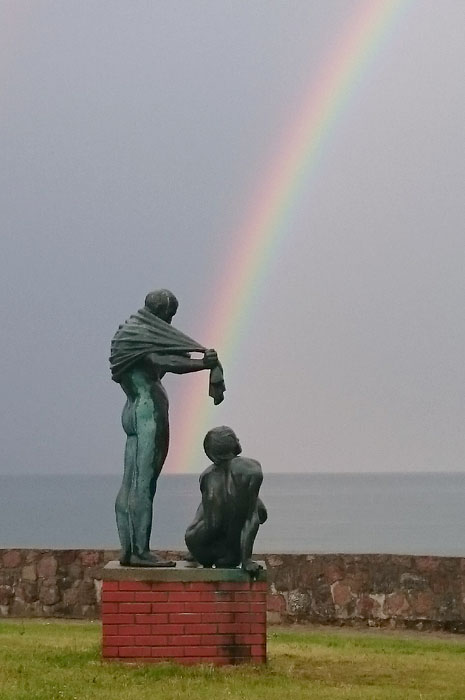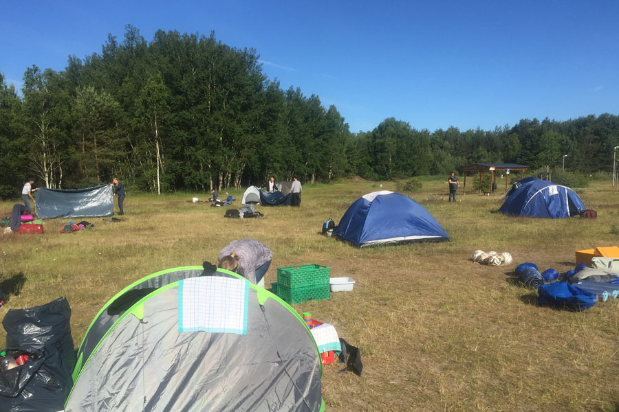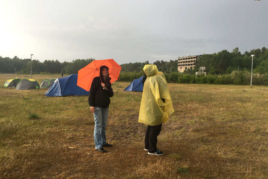 In der Nacht gab es erneut starken Regen und wieder wurden einige von uns auch in den Zelten nass. Morgens haben wir im großen Pavillon Wäscheleinen gespannt und den Trockner erneut in Anspruch genommen. Um 9 Uhr gab es Frühstück in der Jugendherberge. Als alle gegessen und geduscht hatte, machten wir uns fertig für eine 6,4 km lange Wanderung nach Binz, wo wir erstmal ein Eis gegessen haben und anschließen in kleinen Gruppen den Ort erkundet haben. Beim Rückweg konnten wir uns aussuchen, ob wir mit dem Bus fahren oder am Strand zurücklaufen wollten - die meisten von uns haben den Bus genommen.Statt des Abendessens in der Jugendherberge haben wir auf dem Zeltplatz gegrillt und wieder ein Lagerfeuer gemacht. Ein paar von uns waren sogar noch in der Ostsee baden.