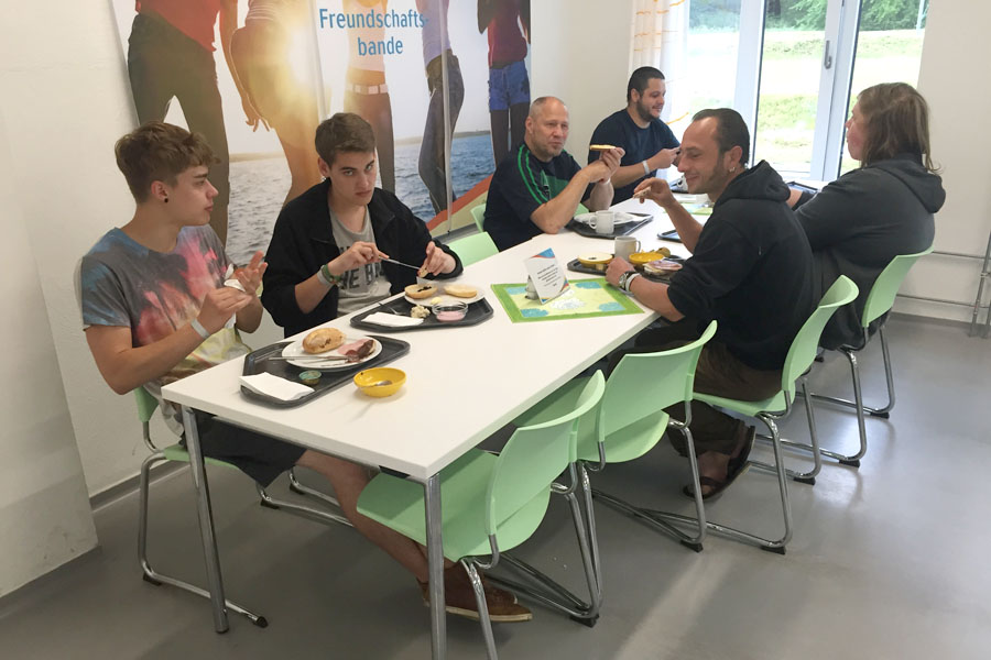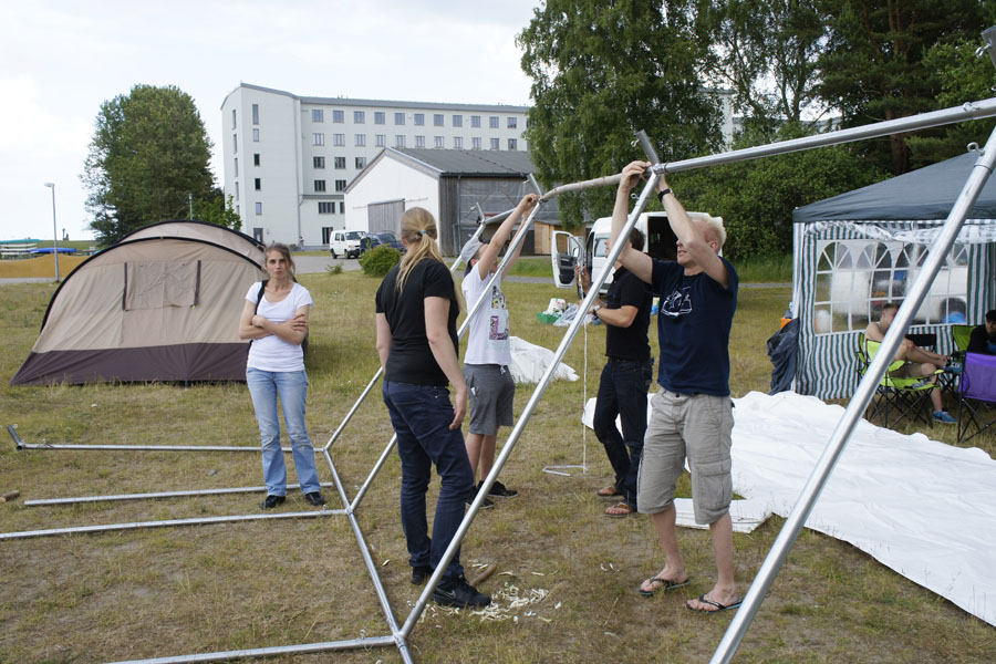 In der Woche vom 22. bis 26. Juni fand unsere diesjährige Sommerreise statt: Mit einem Großteil der TeilnehmerInnen und MitarbeiterInnen von Schule & Beruf ging es nach Rügen. Dort gibt es in Prora eine Jugendherberge mit angrenzendem riesigen Zeltplatz, Fußball-, Basketball und Volleyballplätzen, direkt am Strand der Ostsee. Hier verbrachten wir eine abwechslungsreiche Woche, machten zahlreiche Ausflüge und konnten - wie schon im vergangenen Jahr in Bayern - beweisen, dass uns auch sogenanntes schlechtes Wetter nicht den Spaß verderben kann.