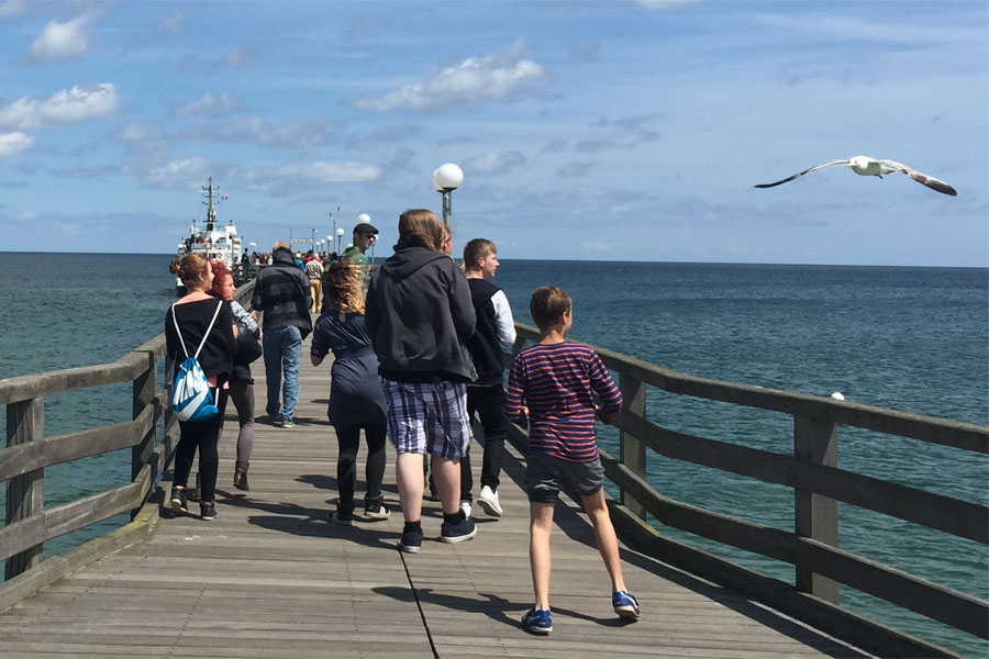 Heute stand eine Fahrt zu den Kreidefelsen auf dem Programm. Mit dem Bus fuhren wir nach Binz, wo wir uns noch etwas die Zeit vertreiben konnten, mittags ging es dann mit dem Schiff weiter. Nach einem Zwischenstop im Hafen von Sassnitz konnten wir bei kühlem, aber schönen Sommerwetter die Kreidefelsen der Küste betrachten. Nach der Rückkehr waren wieder ein paar von uns in der Ostsee baden bzw. trafen sich am Strand, bevor wir uns zum Abendessen in der Jugenherberge versammelten. Am Abend folgte das inzwischen übliche Lagerfeuer, das Dank der fleißigen Holzsammler wie schon an den vorigen Abenden viel Wärme spendete.