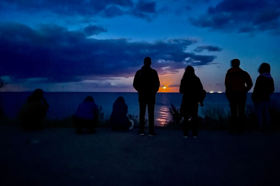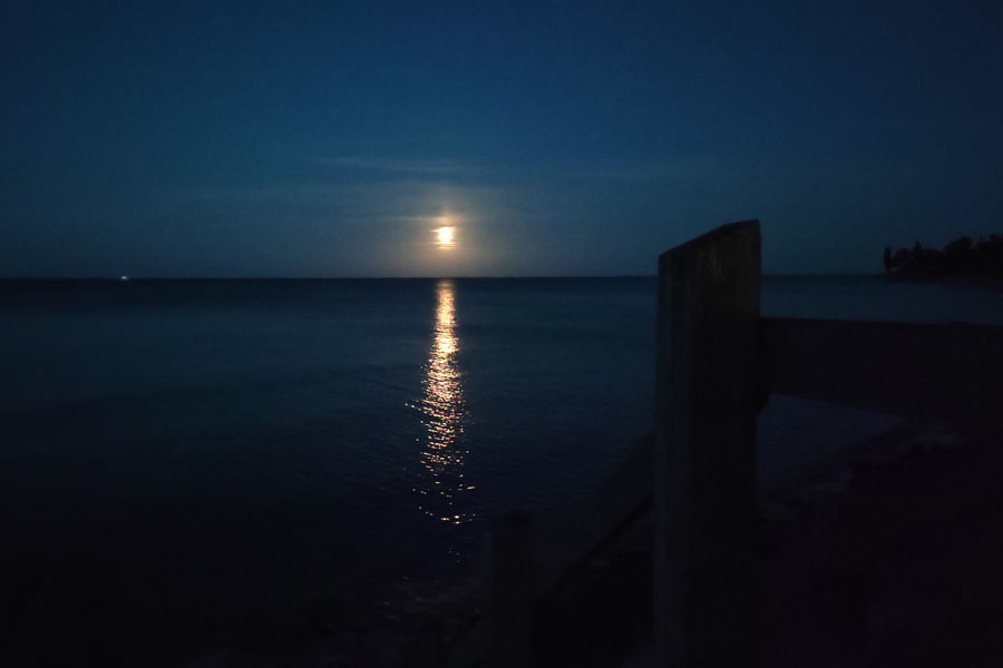 Der 4. Tag war nach allgemeiner Ansicht der Beste. Wir gingen alle zusammen bis auf ein paar „Fußlahmen“ zum Minigolf spielen nach Kellenhusen. Einige gingen schnell über die Bahnen, andere ließen sich Zeit und auch abseits der Bahn konnte man sich in einem trockengelegten Schiff bei einem Eis entspannten. Micha knüpfte unterdessen intensive Kontakte zur einheimischen Bevölkerung. Auch die in der Herberge verbliebenen hatten viel Freude beim Gitarre spielen und Singen.Als alle wieder versammelt waren ging es auch direkt in die Grillvorbereitungen. Für die ersehnten Marshmallows mussten Micha und Bianca sogar 2 Dörfer weiter fahren während Obsti und Hanno mit Hilfe der Teilnehmer das Feuer beschworen. Es dauerte zwar etwas länger, aber dafür war das Ergebnis allgemeine Zufriedenheit. Wer nach dem üppigen Abendbrot noch konnte, machte sich auf den Weg zur Nachtwanderung. Die Sterne waren trotz fast klarem Himmel schwer zu sehen, aber dafür konnten wir als „himmlisches Schauspiel“ den Supermond beobachten.
