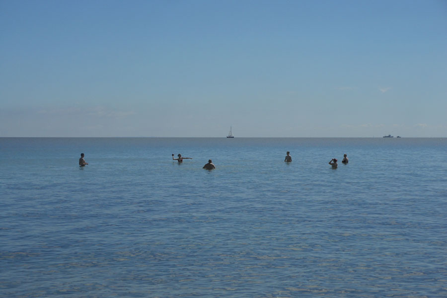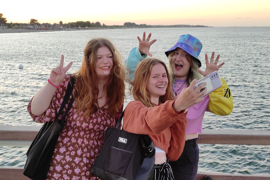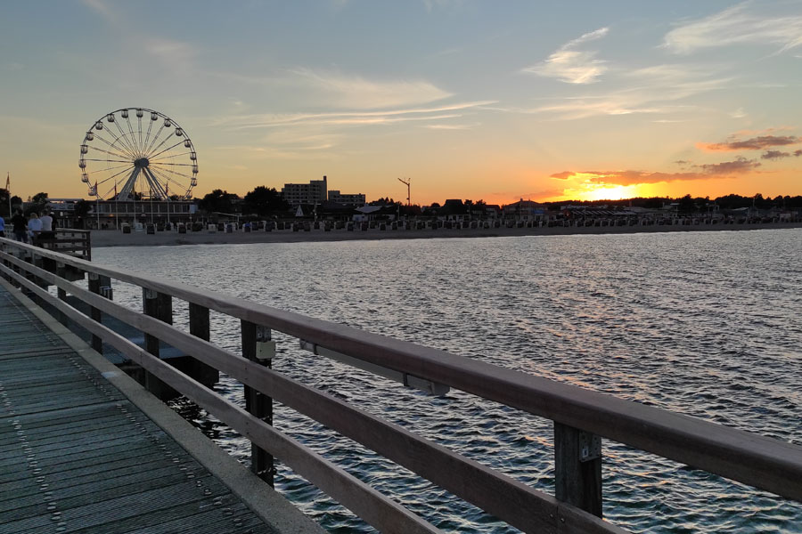 Wir lagen den Tag entspannt in Dahme am Strand oder erkundeten die Stadt. Am Abend wollte ein Teil von uns das Riesenrad besuchen, aber die Zeiten im Internet waren unkorrekt. Es war schon geschlossen. Also gingen wir stattdessen auf den Pier, genossen den wundervollen Sonnenuntergang und aßen Fischbrötchen an der Promenade, während einige bis tief in die Nacht „Die Tore der Welt“ spielten.
