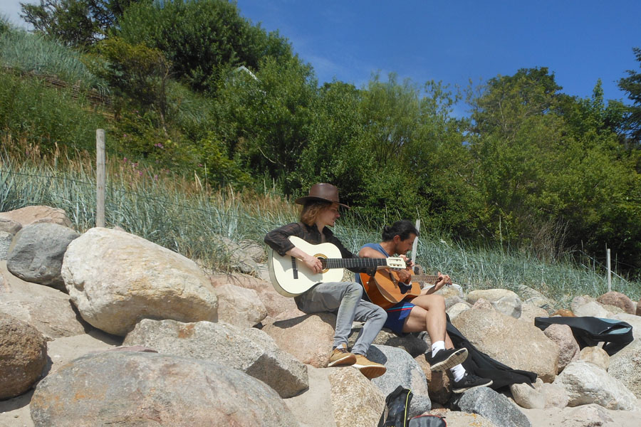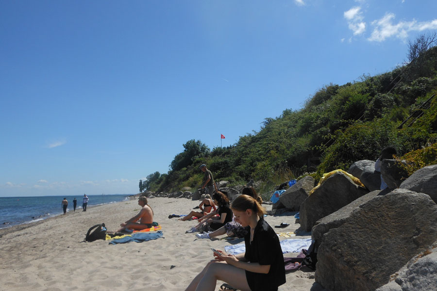 Ankommen nach langer, aber guter Fahrt. Die Pausen waren ordentlich getimed und auch die plötzlich im Bus auftauchenden Gewittertierchen (wie Recherchen ergaben) konnten uns die Stimmung nicht vermiesen. Selbst in der Jugendherberge hatten wir sie noch überall. Die Zimmer waren zwar klein, aber ganz okay. Wir wollten uns auch nicht lang in den Zimmern aufhalten, sondern die Umgebung erkunden und „Stadt“ und Strand in Augenschein nehmen.