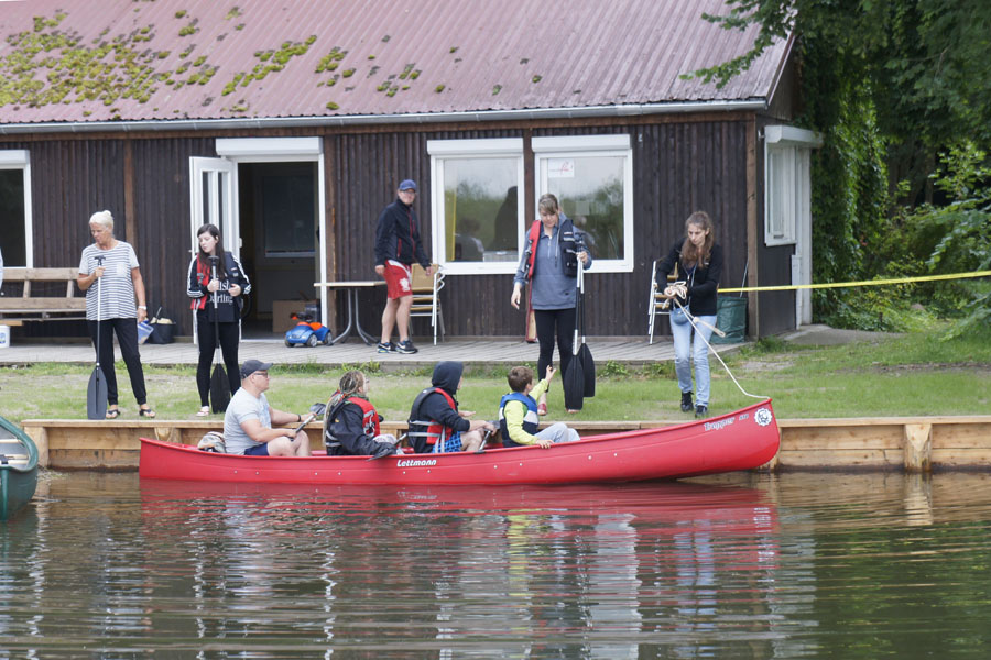 Nach dem Frühstück am nächsten Morgen hat sich ein Teil der Gruppe beim Bootsverleih neben der Jugendherberge Kanus ausgeliehen und sich - trotz des einsetzenden leichten Regens - auf den Weg Richtung der kleinen Seen südlich der Müritz gemacht. Die anderen haben dafür eine Schnitzeljagd vorbereitet. Aufgrund des schlechten Wetters paddelten wir aber nach gut einem Kilometer dann doch wieder zurück und spielten wieder eine Runde Phase 10.