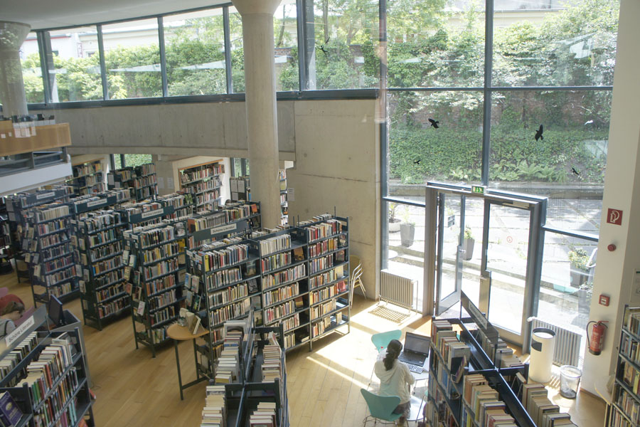 Einige Mitglieder der Kleingruppen machten sich am Montag (08.06.) dazu auf, den Wedding weiter zu erkunden. Nach Ausflügen zu den Sakura-Kirschbäumen an der Bornholmer Brücke und die ehemaligen Gleisanlagen der Grüntaler Straße, ging es diesmal die Panke entlang zur Bibliothek am Luisenbad. Wir spazierten im Schatten der Panke-Allee und erkundeten das von 1785 stammende Gebäude, ursprünglich eine Badeanstalt mit dem Namen Friedrichs-Gesundbrunnen, dann ein Kino und nun eine Bibliothek. Manche von uns machten eine Verschnaufspause im ruhigen Leseraum der Bibliothek, während andere sich sogar ein Buch ausliehen.