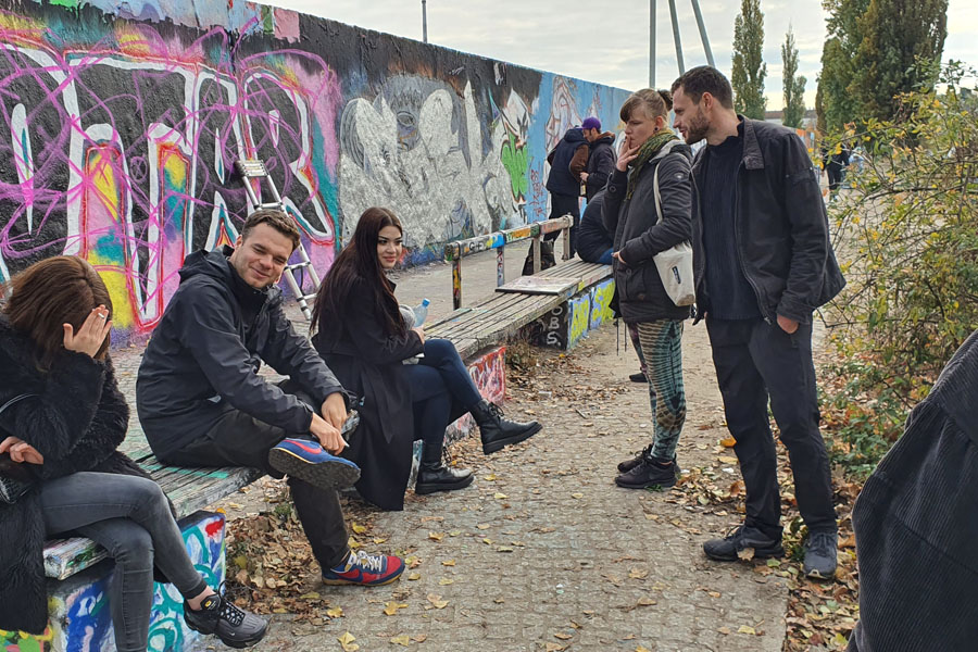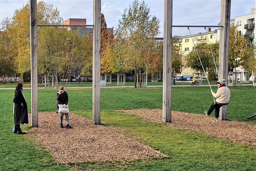 Wie kann man wohl den letzten „warmen“ Tag im November dieses Jahres am besten genießen? Richtig, mit einem Spaziergang in den Mauerpark! Voller Elan machten sich unsere Teilnehmer*innen mit drei Bildungsbegleiter*innen auf den Weg in den Mauerpark. Mit viel Kaffee, Tee und Kakao in petto zog die Truppe also los. Durch den schönen und aufregenden Wedding, am Gesundbrunnen vorbei, wurden gespenstische Brücken überquert und ungeahnte grüne Flächen entdeckt. Zur Stärkung des Erkundungstrupp wurde noch ein örtlicher Bäcker angesteuert, bis wir dann endlich den Mauerpark erreichten. Als erstes wurden von den Teilnehmer*innen (und Bildungsbegleiter*innen!) die örtlichen Schaukeln anvisiert, wobei sich die Jugend bei dieser Aktivität viel leichter tat als die etwas in die Jahre gekommen Bildungsbegleitung.Anschließend wurde noch der Hang am Friedrich-Ludwig-Jahnsportpark erklommen, um sich über den Dächern Berlins die neuste Graffitikunst anzuschauen. Dabei hatten wir großes Glück, denn wir konnten gleich mehreren Künstlern bei ihrer Arbeit über die Schulter gucken. So ließen wir uns auf die in der Nähe gelegen Bänke nieder und verweilten noch ein paar Minuten staunend. Danach gab es noch frohe Kunde für unsere Teilnehmer*innen: Ausnahmsweise durften sie früher nach Hause gehen. Nur die Bildungsbegleitung kam wieder artig im Projekt an. So kann der November beginnen!