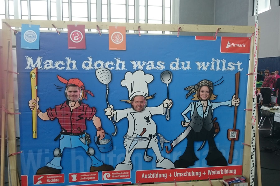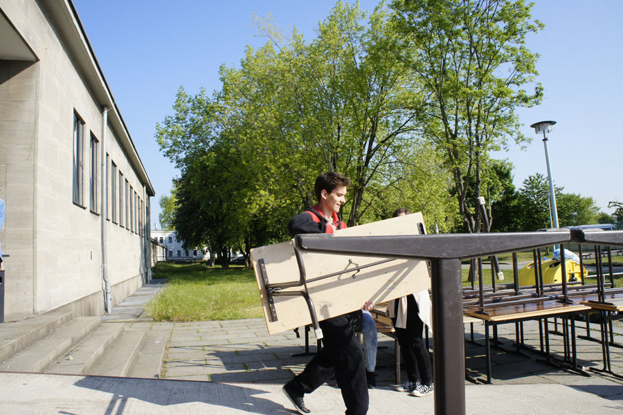 Wie jedes Jahr im Mai waren wir diesmal auch wieder bei der von der Ausbildungsoffensive Pankow veranstalteten Messe „8. Ausbildungstag Pankow“ dabei - als Besucher und als Aufbauteam. Das bedeutete frühes Aufstehen (Treffpunkt war um 7.30 Uhr am Sportforum!), Tische, Stühle, Stellwände an Ort und Stelle bringen und anschließend auch wieder aufräumen. So leicht das klingt, es war schweißtreibend! Zum Glück waren wir so viele fleißige Helfer, dass die Messe rechtzeitig aufgebaut war.Am Mittwoch fand die eigentliche Messe statt, bei der wir uns in kleinen Gruppen bei Ausbildungsbetrieben und -einrichtungen erkundigten, viel Informationsmaterial, Snacks und Preise sammelten. So mancher Praktikumsplatz ergab sich dadurch.