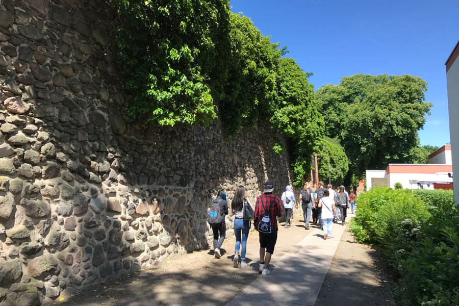 Wir waren am Freitag, dem 2. Juni in Bernau und haben uns die historische Stadt angeschaut, während ein Bildungsbegleiter von Schule & Beruf uns mit den nötigen Informationen versorgte.Als erstes sind wir zum alten Stadtwall gelaufen und haben diesen besichtigt. Auf Grund der guten Qualität des Walles wurde die Stadt nie erobert! Der Stadtwall und die anderen historischen Attraktionen, wie die Kirche und das Henkerhaus, sind immer noch aufzufinden. Die Gebäude sind teilweise restauriert und deswegen noch in einem guten Zustand. Im Henkerhaus, in dem insgesamt 22 Frauen und 3 Männer umgebracht wurden, hat man nicht nur Menschen getötet, sondern auch alte oder kranke Tiere, die keinen Nutzen mehr für die Arbeit hatten. Dadurch war der Henker ein sehr wichtiger Beruf im Mittelalter.Zum Abschluss des Wandertages war die ganze Gruppe noch Döner essen, bevor wir uns ins lange Wochenende verabschiedeten.