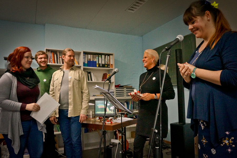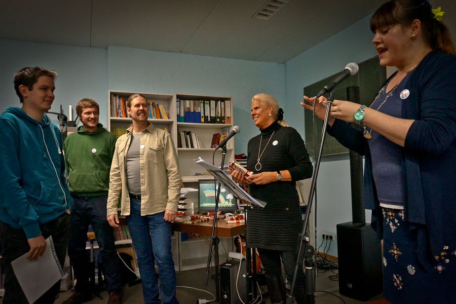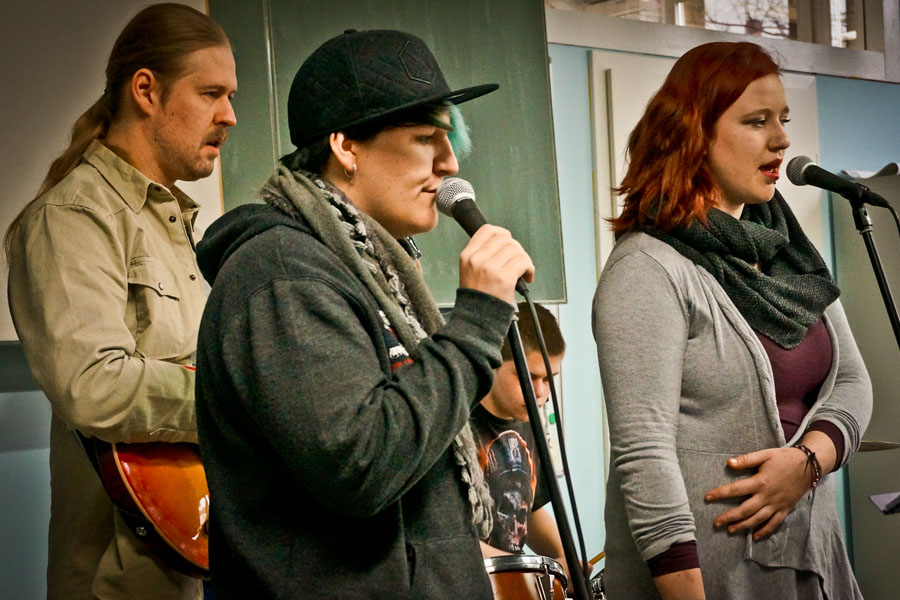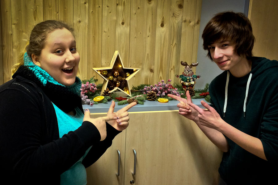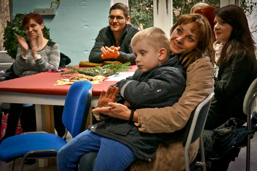 Am 10.12.2014 hatten wir unsere alljährliche Weihnachtsfeier. Es wurden Zeugnisse an die Teilnehmer vergeben, die den eBBR bestanden haben. Auch wurden Teilnehmer ausgezeichnet, die immer für das Projekt da waren: ein Musikengel, ein Kreativengel und ein Fleißengel. Unsere Projektband (Völlig anders) spielte zwei Titel ( und ). Eine kleine Überraschung hat uns das Wetter gemacht: Es fing an zu schneien!Nach dem Mittagessen haben sich ein paar Teilnehmer an Karaoke versucht. Alle hatten ihren Spaß. Wir hoffen, dass auch alle Besucher viel Freude hatten und freuen uns schon auf das Sommerfest im nächsten Jahr!