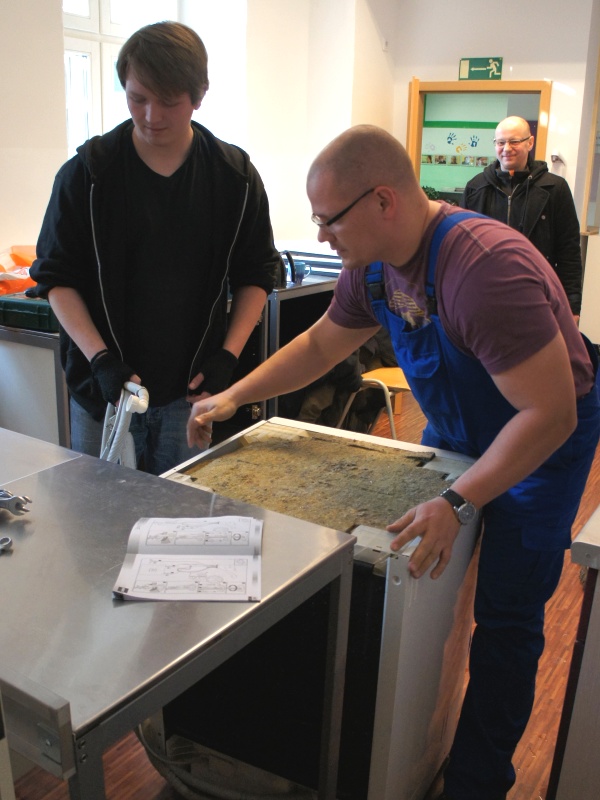 Seit Anfang März wurde die Projektküche umgebaut. Viele Hände halfen dabei, die stark beanspruchte Küche zu modernisieren. Sie wurde in einen separat abgetrennten Raum verwandelt, der nun zu einer Kochoase wurde, in der unser Koch Sven Meisterwerke zaubern kann.Das Trockenbau-Team unseres Kooperationspartners Denis Schameitis arbeitete sehr gewissenhaft mit unserem Schülerpraktikanten Jan und errichtete binnen kürzester Zeit ansehnliche Resultate. Die Heizungen und die Decke bekamen Verkleidungen und auch sonnst hat sich vieles getan: Ein neuer weißer Anstrich lässt die Wände frisch erstrahlen, aus Rigipsplatten wurden Wänden mit einer Tür und einer verschließbaren Duchrreiche errichtet. Die Küche ist dadurch jetzt vom Vorraum getrennt.Auch neu sind die Edelstahlmöbel, auf denen sich unser Koch Sven jetzt austoben darf und die jede Menge Stauraum für seine Küchenhilfsmittel bietet. Die Spüle wurde gegen eine neue ausgetauscht, wobei unser ehemaliger Teilnehmer Robert tatkräftig Projektleiter Robert bei der Installation unterstütze.Um die Hygiene nicht zu vernachlässigen, haben wir nun einen sehr praktischen Desinfektionsmittelspender neben der Tür angebracht. Nach den letzten Handgriffen in den ersten Apriltagen hat Sven nun seinen neuen Arbeitsplatz in Empfang genommen, um uns mit seinen Kochkünsten zu verwöhnen. Nach einer guten Mahlzeit lassen sich nämlich alle Aufgaben leichter angehen!